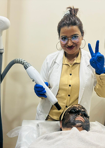 Her expertise spans a wide range of services, including Laser Therapy, Aroma Therapy, Mesotherapy, Bridal Makeovers, Advanced Hair Care Treatments, and Nail Aesthetics.